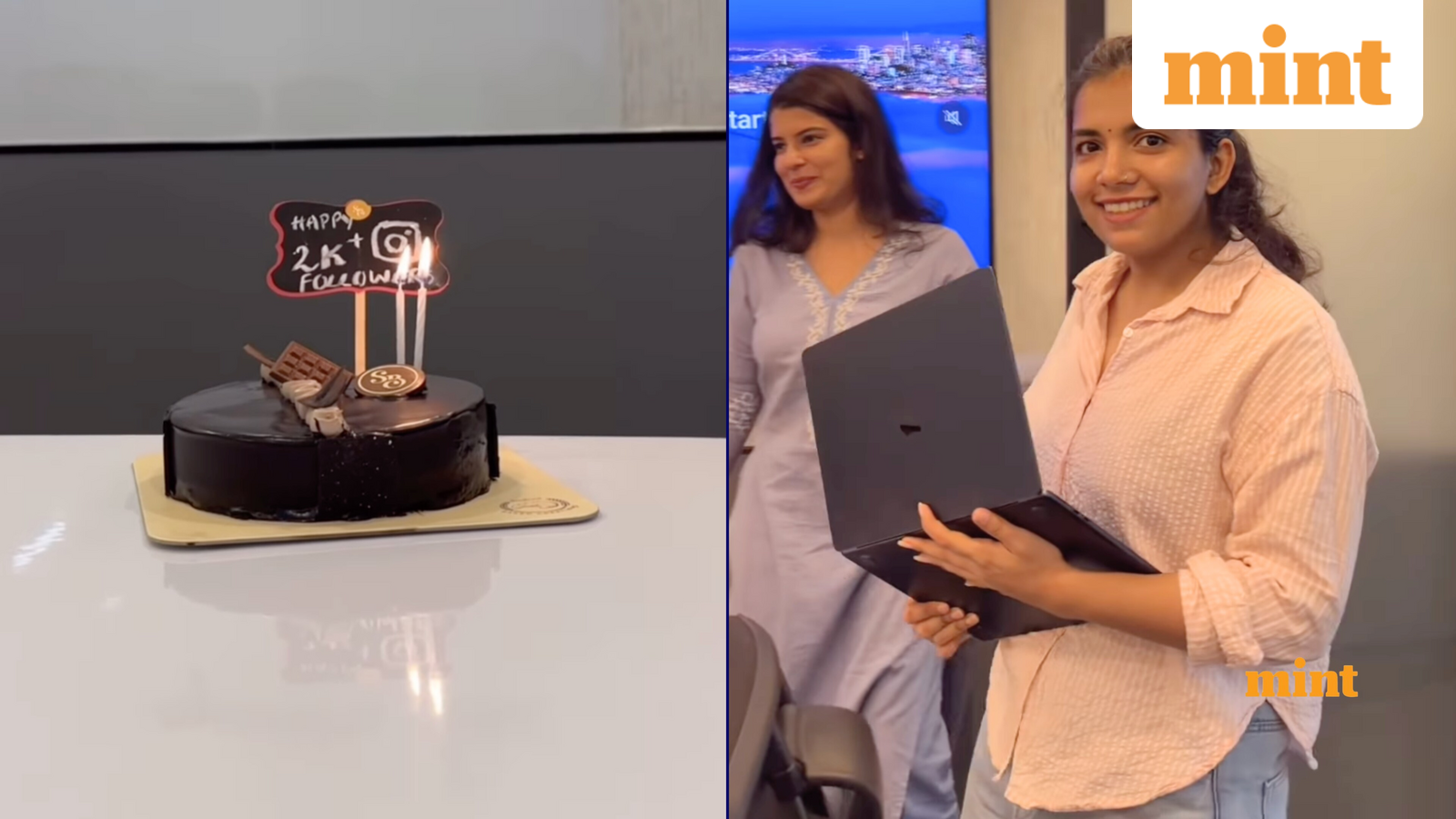 “Aishu, you did it. Congratulations,” her boss says. When she seems confused, why? Her boss asks her to check out the wall. She bursts into laughter as she sees ‘Happy 2K Followers’ written on a piece of paper on the wall.
