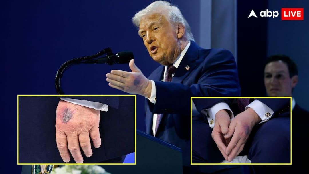 A big revelation has been made regarding the health of US President Donald Trump. The White House has shared information related to his health. Donald Trump appeared on the Davos stage with a strange mark on his hand. When Trump was giving his speech in Davos, a blue and black mark was seen on his left hand.