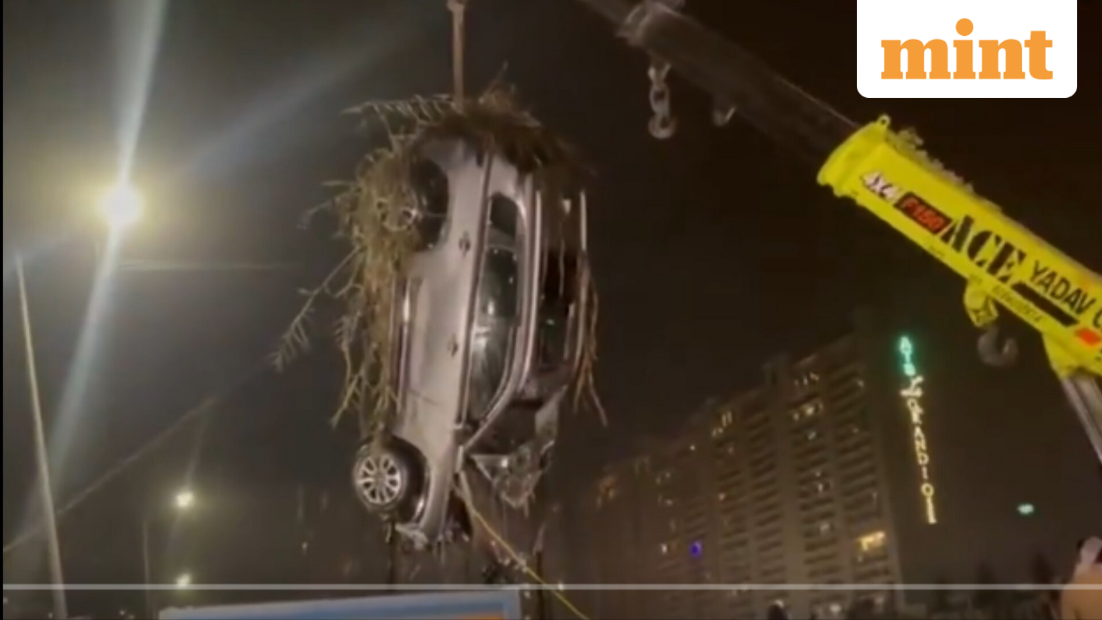 The rescue team used boats and divers to locate Mehta’s car and pull it out three days after the incident. A video shared by news agency PTI showed a crane lifting the car, which was completely covered with debris, including grass and tree branches.